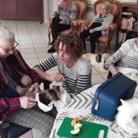 Publiée le 05/05/2023Valérie fait halte avec sa petite ménagerie itinérante de zoo-thérapie à la résidence La Presqu'île le 05 mai. Lire la suite