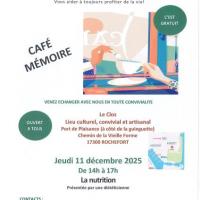 Publiée le 05/12/2025Nous partageons l’invitation de France Alzheimer pour son prochain Café Mémoire du 11 Décembre. Lire la suite