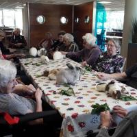Publiée le 20/10/2022La petite troupe indisciplinée de Valérie s'est installée sur la table du salon d'activités ce 19 octobre. S'il a fallu préparer la recette du goûter des petites bêtes, c'est toujours avec le même enthousiasme que les résidents de Fouras participent aux ateliers de zoo-thérapie. Lire la suite