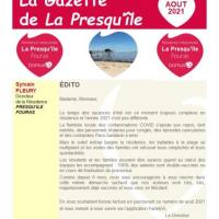 Publiée le 31/07/2021Madame, Monsieur, votre numéro d'AOUT 2021 de la GAZETTE de LA PRESQU'ILE est disponible. Sur le site internet, via l'application FAMILYVI et à disposition en résidence, retrouvez nos informations, nos petites et grandes histoires du mois de juillet et ce qui sera proposé au mois d'Aout. Lire la suite