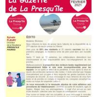Publiée le 28/01/2021Le numéro de LA GAZETTE DE LA PRESQU'ILE de Février 2021 est disponible. Accessible par FamilyVi, consultable sur le site internet, distribué aux résidents dés ce weekend et adressé par voie postale avec la facturation mensuelle, ce numéro revient sur le mois de Janvier et présente les dates et informat [...] Lire la suite