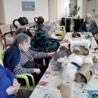 Publiée le 10/04/2025Séance de zoothérapie pour les résidents ce 10 avril. On sort les tables et on met les pieds sur la nappe 🐕🐇. Lire la suite
