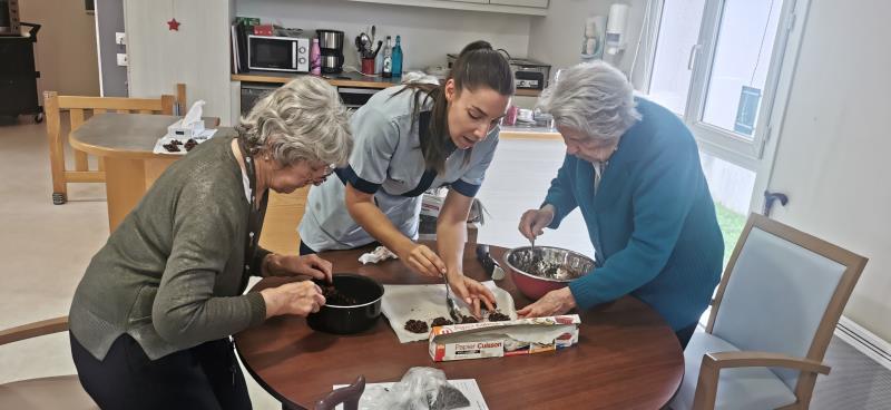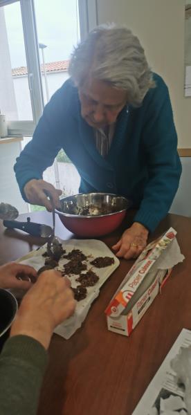 Résidence de la Presqu'Île > Actualités > Patissières Patissières Publiée le 11/12/2025 Le mercredi 10 décembre est un jour gourmand au Pôle d'Activités et Soins Adaptés de LA PRESQU'ILE. Cookies et Roses des sables sont cuisinés par les résidents.