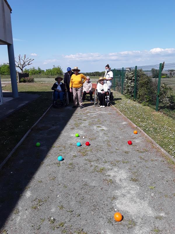 29 avril, le soleil dans le jardin est propice au retour de la pétanque à la résidence La Presqu'île de Fouras. Les chapeaux sont de sortie, le soleil baigne l'établissement.