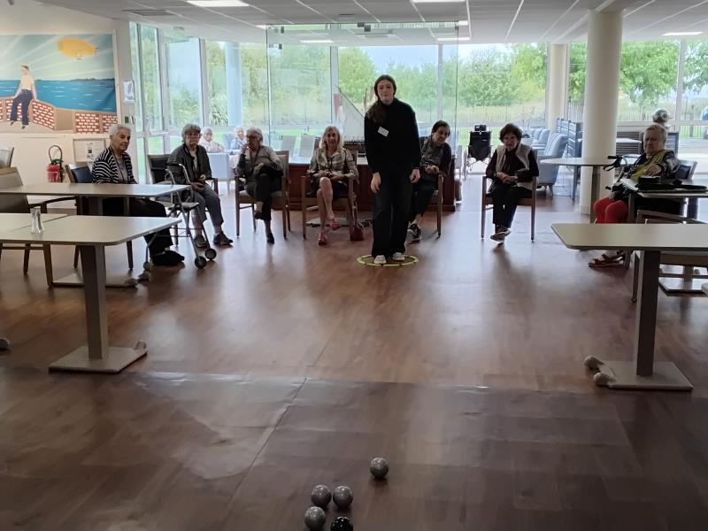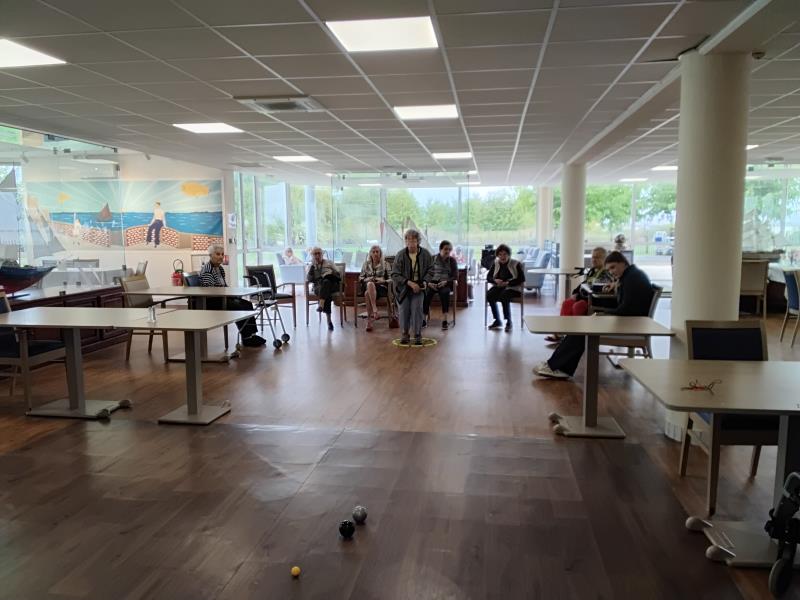 Résidence de la Presqu'Île > Actualités > Pétanque intérieur Pétanque intérieur Publiée le 22/10/2025 En ce mardi pluvieux, la pétanque se joue aussi à l’intérieur pour nos résidents, accompagnés de la stagiaire d’animation.