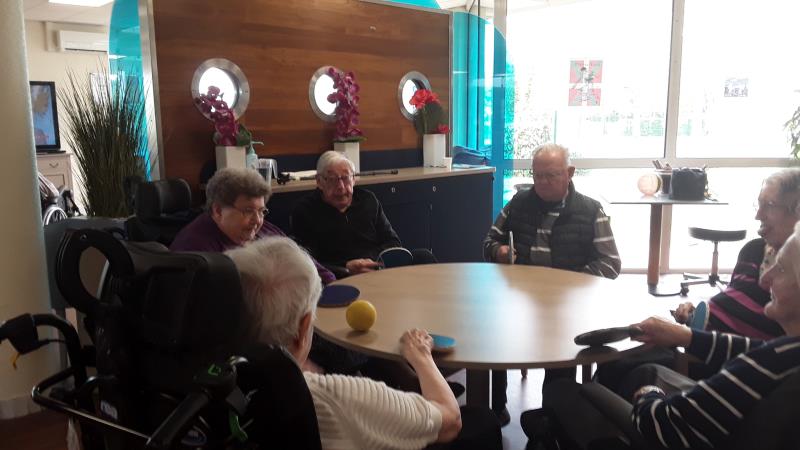 Si un des rendez-vous incontournables de la résidence est propice aux éclats de rire, c'est l'activité ping-pong adapté. Ce mercredi 26 avril est encore bruyant et dissipė 😄🏓