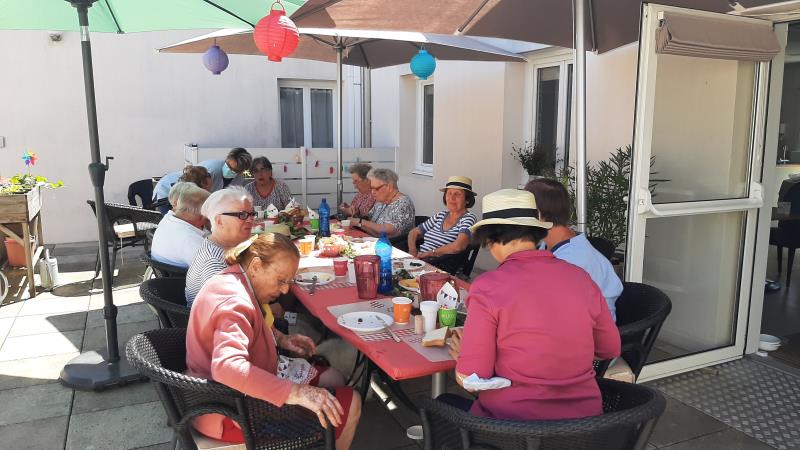 La terrasse du PASA est rarement inoccupée. Avant le retour de la canicule prévue pour cette fin de semaine, il est encore temps de profiter des parasols pour partager le déjeuner de ce 05 aout.