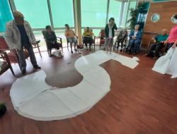 La préparation des lettrages pour le message prévu dans le jardin pour le passage des hélicos du Tour de France se finalise.