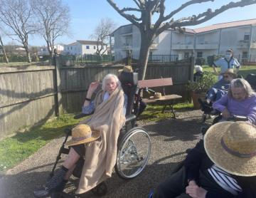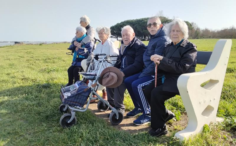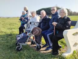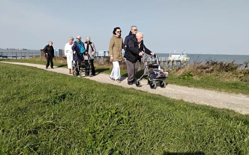 Sortie mutualisée entre différents services de la résidence ce 25 février. Le grand soleil accompagne les marcheurs sur le sentier du littoral autour de l'établissement.
