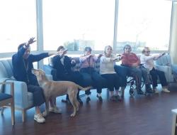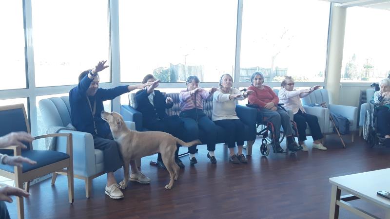Résidence de la Presqu'Île > Actualités > réveil musculaire réveil musculaire Publiée le 14/02/2023 Rendez-vous incontournable des lundis matins, l'atelier gym adaptée se fait sous le soleil du 13 février. Un sportif à quatre pattes 🐶 s'est invité !