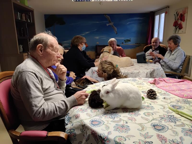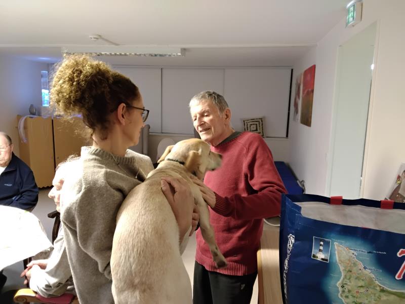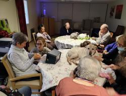 Résidence de la Presqu'Île > Actualités > Séance zoothérapie Séance zoothérapie Publiée le 15/12/2025 Jolie séance ce 12 Décembre pour les résidents de l'Unité Sécurisante des Voiliers