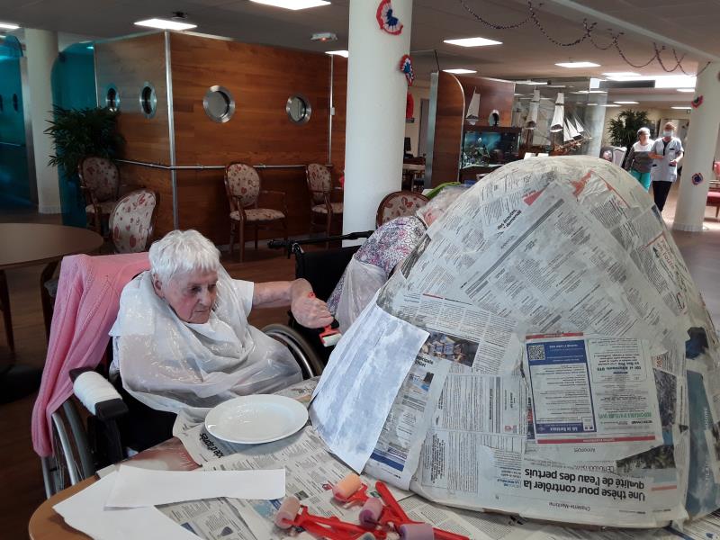 Catherine, l'animatrice de la Residence La Presqu'île de Fouras a toujours le don de surprendre les résidents. L'activité en cours est pleine de mystères, un dôme un papier collé grandit dans la résidence... A suivre.