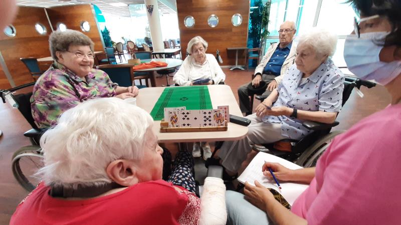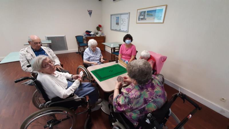 Temps caniculaire ce 14 septembre à Fouras. Catherine propose d'animer la table de belote. Désinfection des mains et des cartes et voila une partie comme si le COVID n'existait pas !