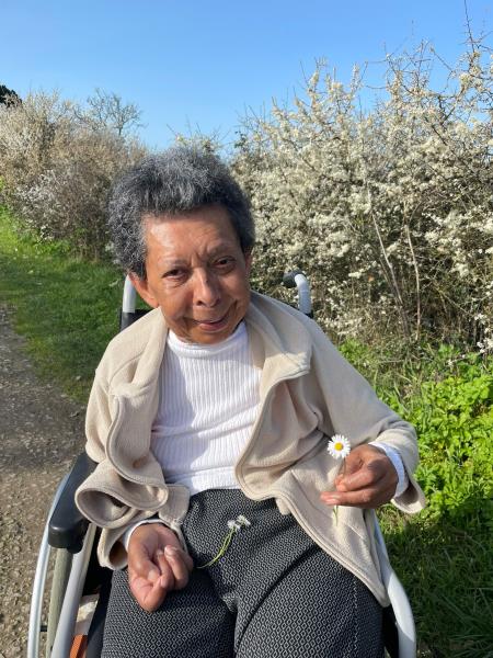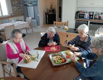 Direction le front de mer pour les résidents de l'Unité Sécurisante sous le soleil du 04 mars. Angèle, une des psychomotriciennes de la résidence LA PRESQU'ILE sait transformer ce bol d'air main en séance thérapeutique exterieure.
