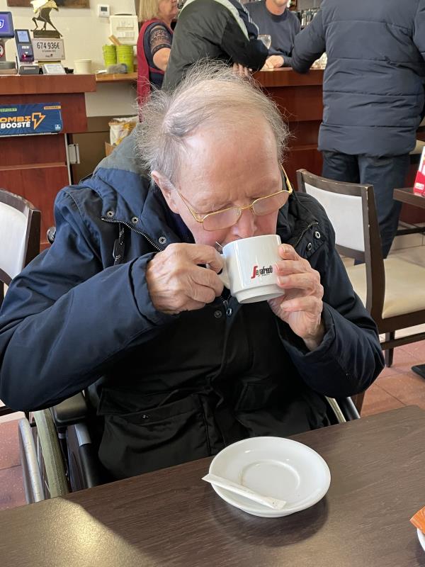 Une dernière visite au marché de Noël de Chatelaillon pour ce 31 décembre. Les résidents de l'Unité Sécurisante, en famille et accompagnés par Douglas, Aide-soignant et Maé, psychomotricienne, profitent des derniers jours du marché. Le chocolat chaud est indispensable ce matin ☕ !