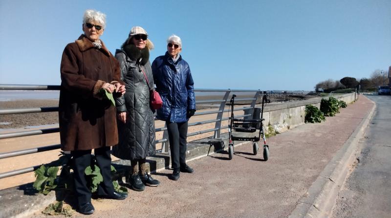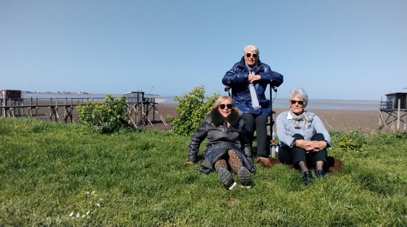 Sortie matinale pour certaines avec la promenade encadrée par Arnaud, notre kinésithérapeute. Le temps de faire un peu les stars pour la pose du photographe sous le grand ciel bleu de FOURAS mais en profitant d''une marée basse à cette heure.