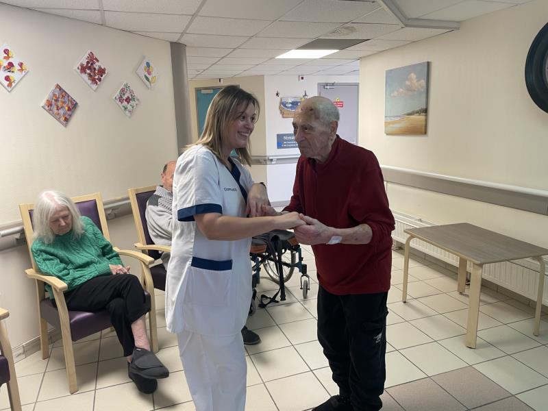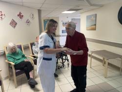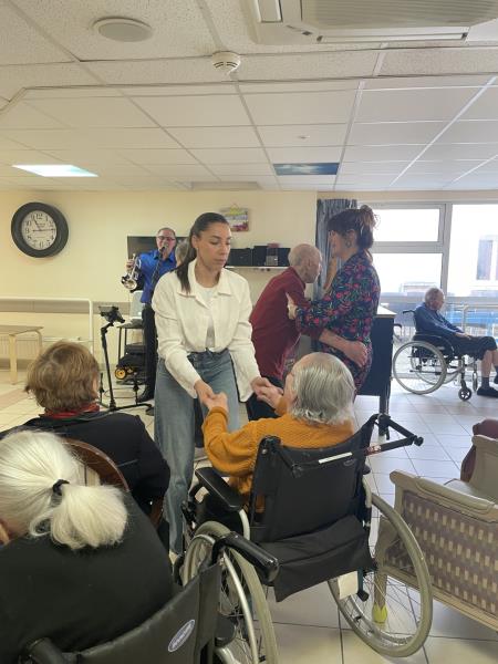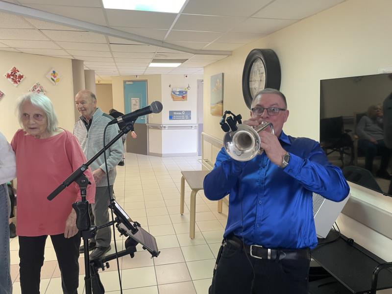 C'est la fête en musique pour les résidents de l'Unité Sécurisante des Voiliers le 19 février avant le déjeuner. Vincent 🎺 🎶 sait ouvrir les appétits en musique.