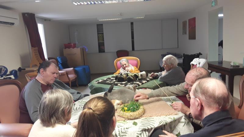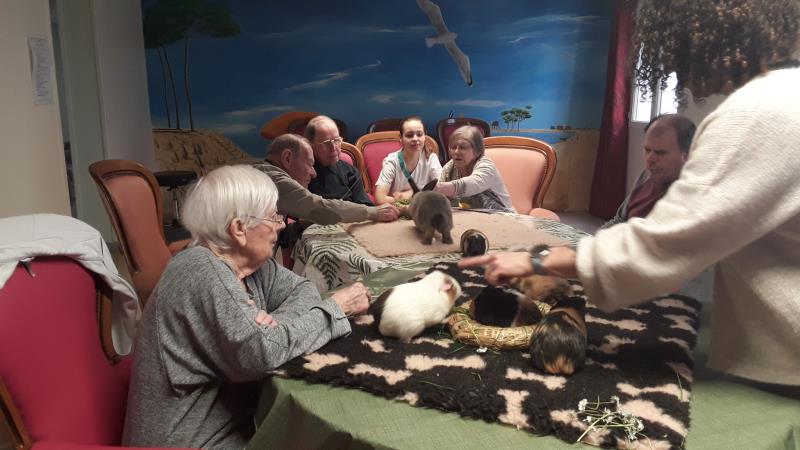 Résidence de la Presqu'Île > Actualités > zoo-thérapie zoo-thérapie Publiée le 11/03/2024 8 mars, rendez-vous dans la salle d'activités de l'unité sécurisante pour la séance hebdomadaire de zoo-thérapie avec Valérie.