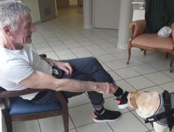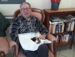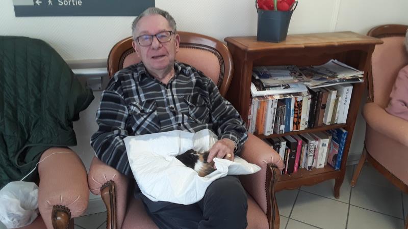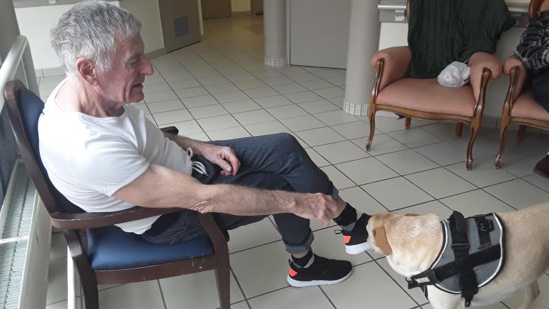 La résidence de Fouras propose, chaque semaine, une séance de zoo-thérapie avec notre partenaire Truffes Empathes. La séance du 26 est en intérieur, la météo est humide.