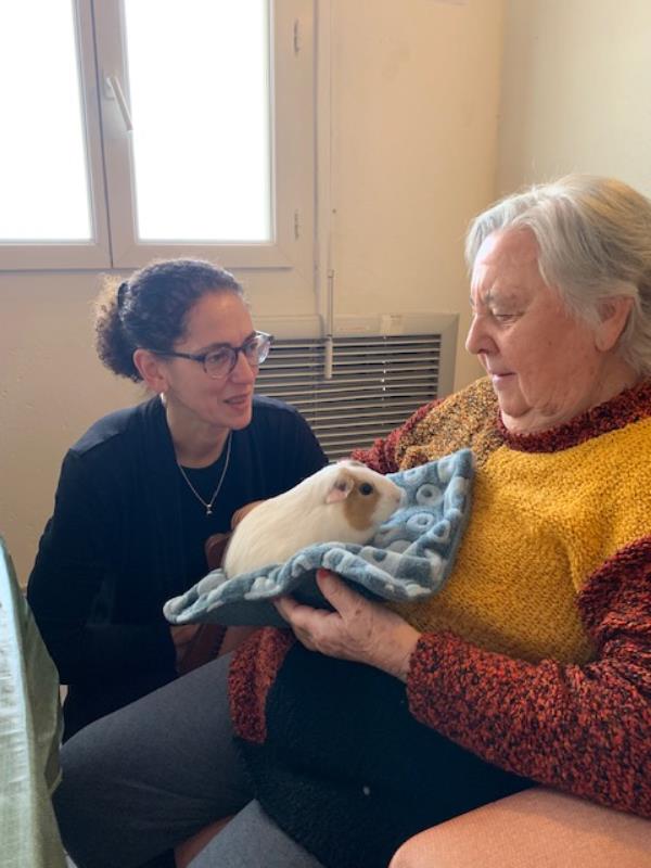 Résidence de la Presqu'Île > Actualités > Zoo-thérapie Zoo-thérapie Publiée le 08/01/2024 Encore une jolie séance le 05 janvier avec la petite ménagerie de Valérie DANCOURT, notre partenaire Zoothérapie.