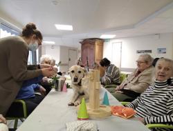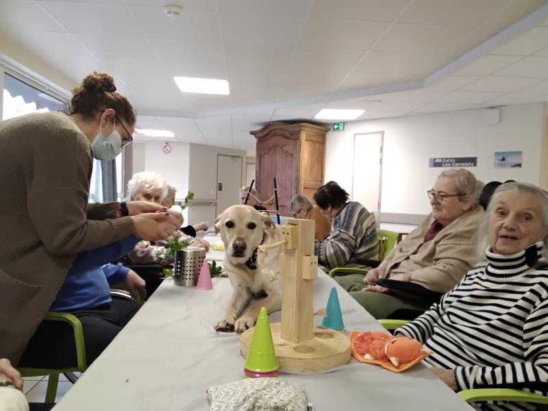 Résidence de la Presqu'Île > Actualités > Zoo-thérapie Zoo-thérapie Publiée le 20/01/2026 Les petites bêtes de notre partenaire Valérie DANCOURT ont le droit de mettre les pieds sur les tables ce 19 janvier 🐰 🐶.