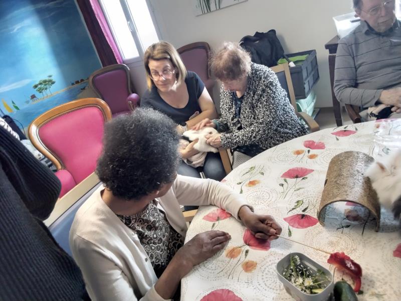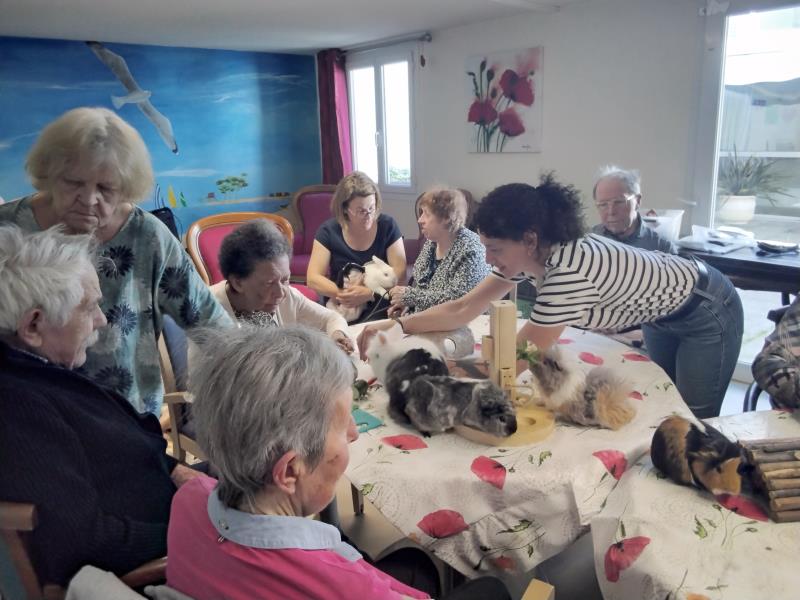 Résidence de la Presqu'Île > Actualités > zoothérapie zoothérapie Publiée le 11/04/2025 séance hebdomadaire de zoothérapie dans l’unité sécurisante de La Presqu'île le 11 avril.