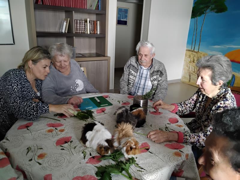 Résidence de la Presqu'Île > Actualités > zootherapie zootherapie Publiée le 12/09/2025 Jolie séance de zootherapie avec la petite ménagerie de Valérie pour ce 12 septembre.