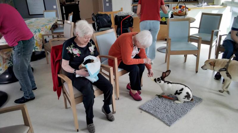 Résidence de la Presqu'Île > Actualités > Zoothérapie Zoothérapie Publiée le 23/04/2026 Il y a foule au Pôle d'Activités et Soins Adaptés ce 22 avril pour le rendez-vous de zoothérapie à LA PRESQU'ILE 🐰 🐶....