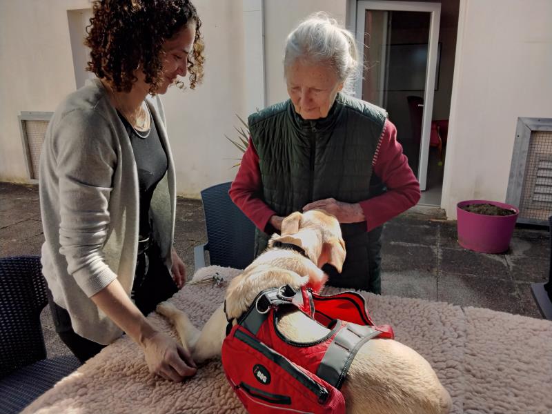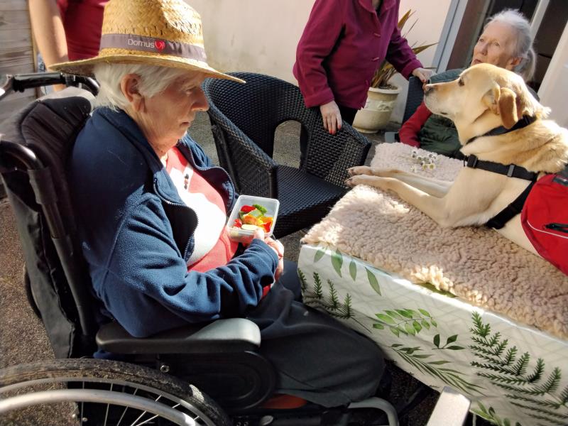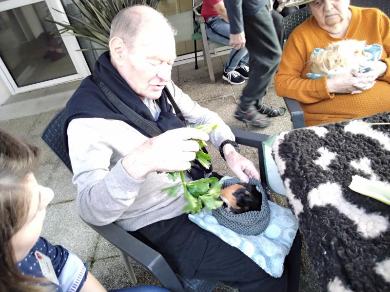 Résidence de la Presqu'Île > Actualités > zoothérapie zoothérapie Publiée le 25/03/2024 22 mars, la séance hebdomadaire de zoothérapie pour l’unité sécurisante peut se tenir en extérieur. C’est le printemps à Fouras.